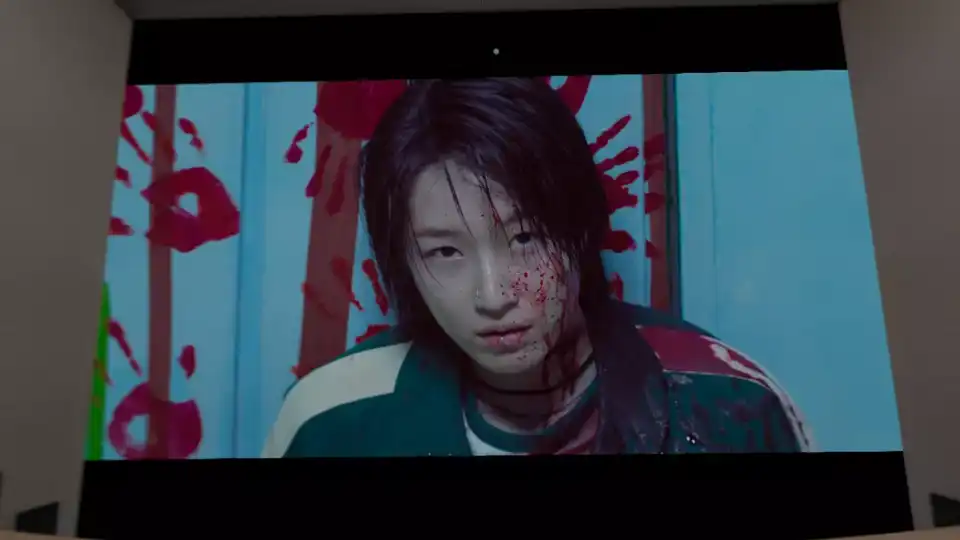 导演黄东赫没有重复前作的经典玩法,反而让新登场的 “哲秀” 兄妹成了游戏设计者,他们打造的关卡藏着童年回忆的陷阱,比如碎花地板场景里,每一步踩踏都关联着玩家的过往秘密,镜头在紧张的闯关画面和角色回忆间切换,玻璃破碎的脆响里混着童年的笑声,这种反差感让惊悚多了层心酸。