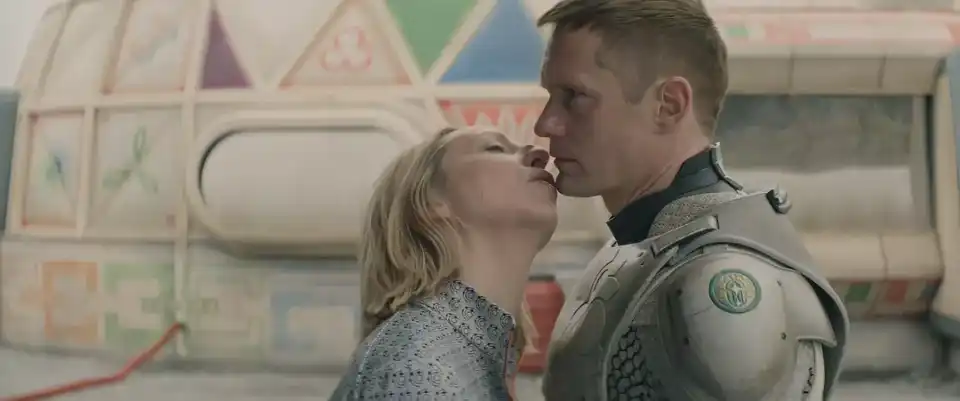 斯卡斯加德的表演更是封神,他用微顿的语气和僵硬却藏着情绪的动作,把 “机器身、打工人心” 演得入木三分,难怪观众说 “看他吐槽雇主的样子,像极了我背后说老板的模样”。