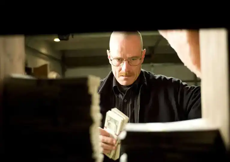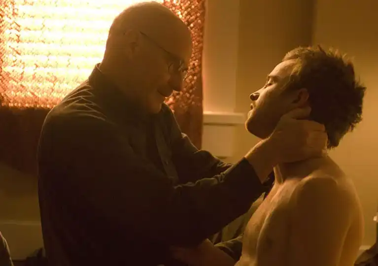 饰演沃尔特的布莱恩・克兰斯顿为了贴合角色,前期刻意佝偻着背、压低声音,把中年人的卑微刻进骨子里;后期则慢慢挺直腰杆,眼神从怯懦变得锐利,这种细节上的蜕变,让 “海森堡” 的诞生毫无违和感。